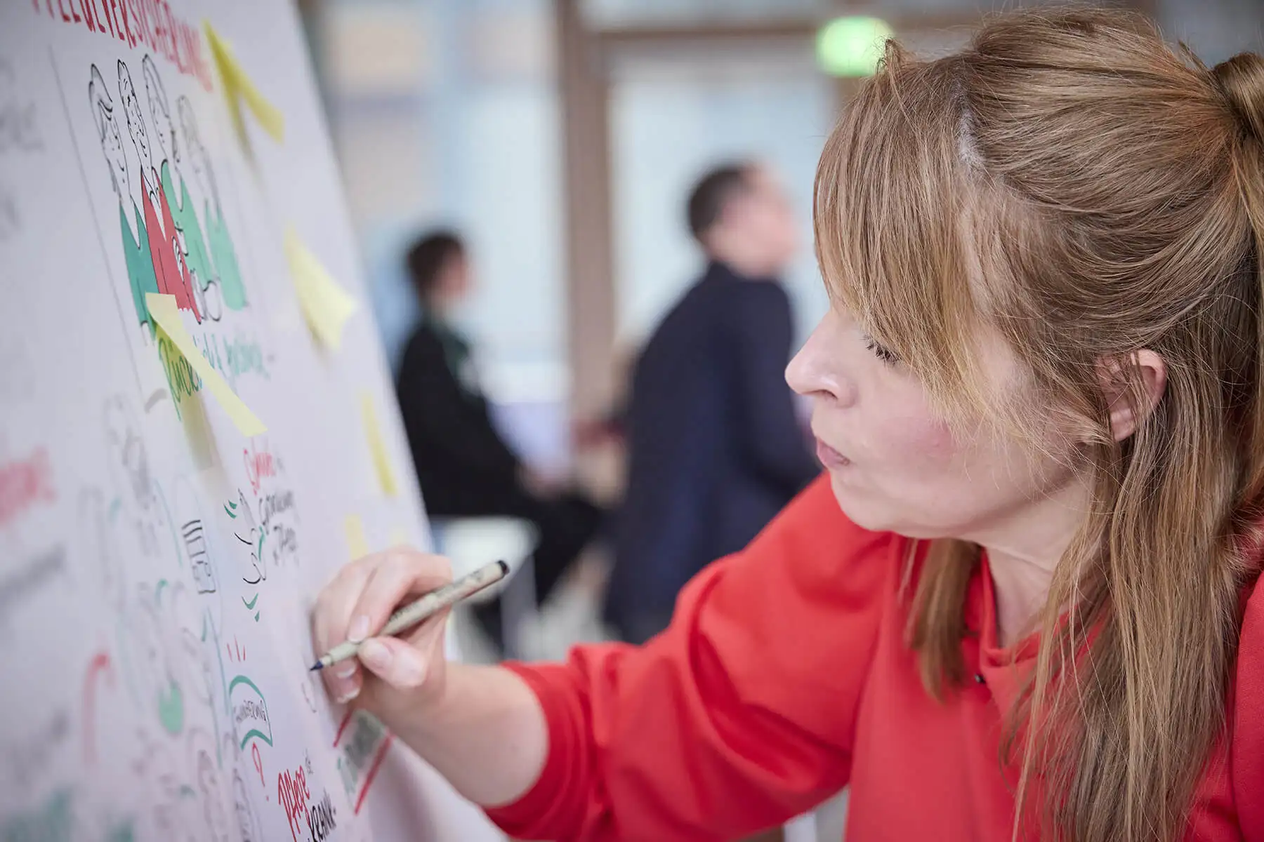Foto von Marc Beckmann mit Genehmigung des Ministerium für Arbeit, Gesundheit und Soziales des Landes Nordrhein-WestfalenVorab habe ich ein Key Visual entwickelt, das ich auf dem iPad vorgezeichnet habe und dann im Büro auf die Kappaplatte übertragenIch habe mir meine Skizzen vom Warmzeichnen direkt an die Wand geklebtFoto von Marc Beckmann mit Genehmigung des Ministerium für Arbeit, Gesundheit und Soziales des Landes Nordrhein-WestfalenFoto von Marc Beckmann mit Genehmigung des Ministerium für Arbeit, Gesundheit und Soziales des Landes Nordrhein-WestfalenDas finale Graphic RecordingDiese Bildidee hat etwas in mir gearbeitet, daher habe ich sie im Nachgang noch ausgearbeitet