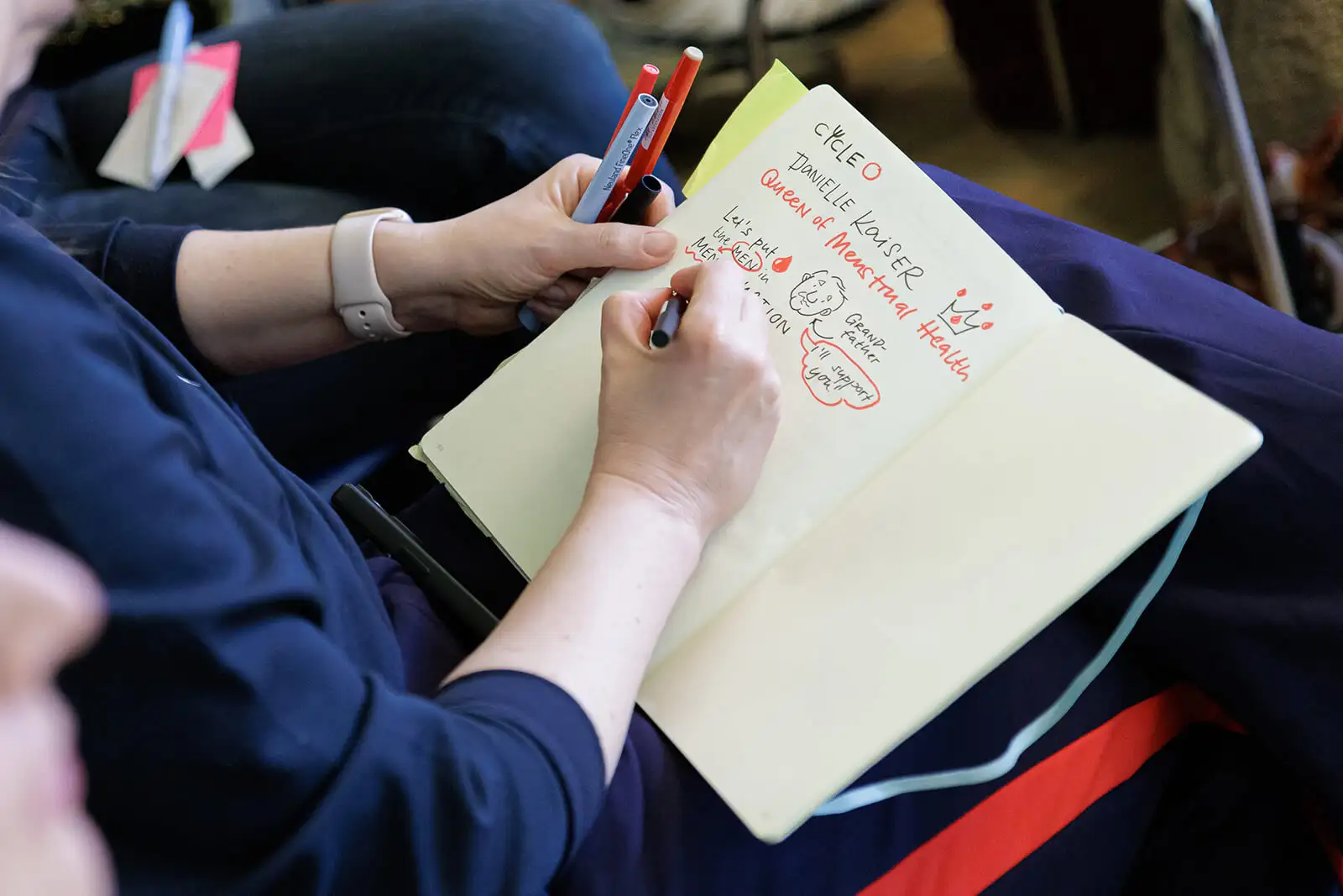 Auf dem Berliner Creative Morning gab es im März einen spannenden Vortrag rund um Menstruation. Da ich dort quasi privat war, habe ich etwas neues ausprobiert: Meine schnellen Sketchnotes im Nachgang in einzelne Szenen umgesetzt. Das hat richtig gut funktioniert!
