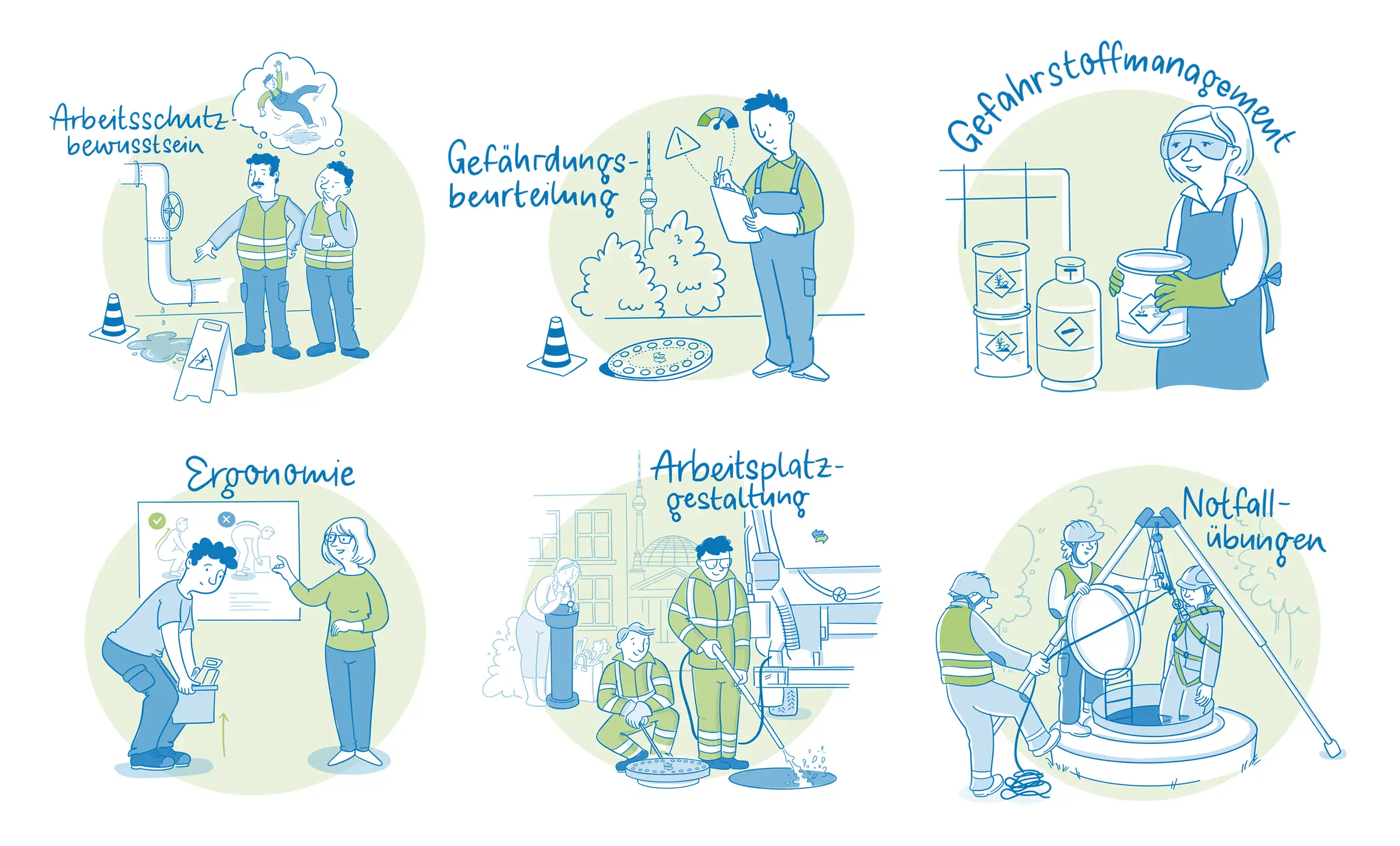 Berliner Wasserbetriebe Arbeitssicherheit Illustrationen