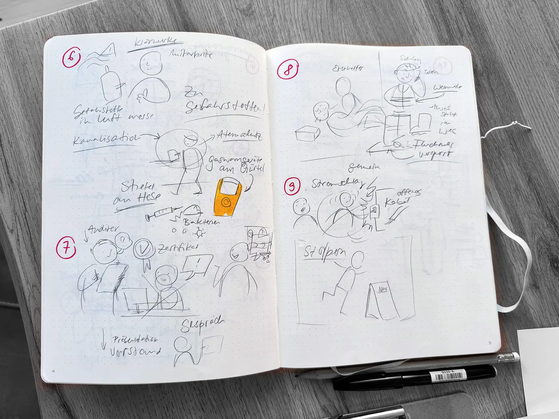 Im Herbst 2024 durfte ich für die Berliner Wasserbetriebe Szenen zur Arbeitssicherheit illustrieren. Zunächst wünschte sich der Kunde ein Wimmelbild, wir haben aber gemeinsam entschieden, dass einzelne Szenen ähnlich wie hier viel passender sind. Danach habe ich im engen Austausch mit dem Kunden diese Szenen entwickelt und dann gezeichnet und wie immer viel gelernt, in diesem Fall über Arbeitssicherheit.