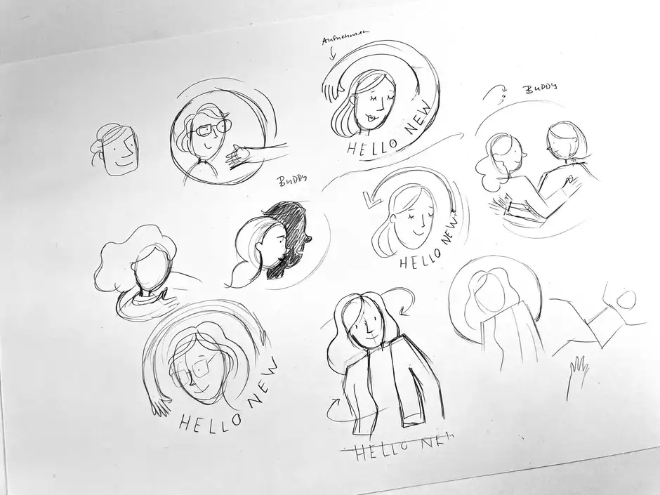 Logos mache ich ja nicht mehr so oft wie früher. Aber wenn Logos illustrativ sein sollen, kann ich nicht Nein sagen. Das hier ist so ein Logo – ein Logo für das Projekt »Hello New« des EWMD (European Women's Management Development), bei dem es um eine Art Buddy bzw. Obboarding Programm für Frauen in Führungspositionen ging.