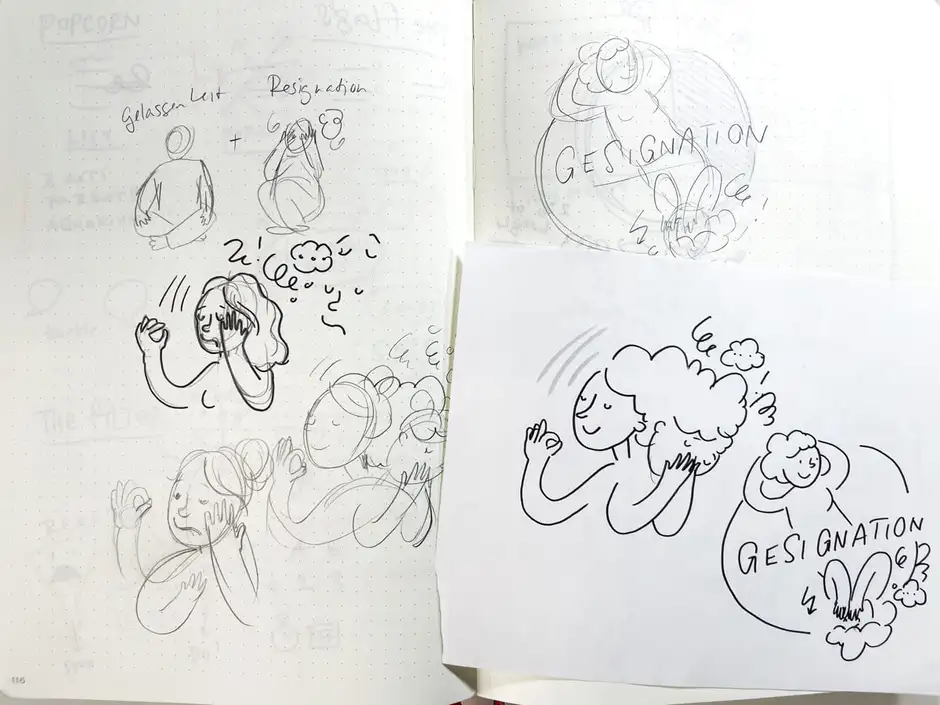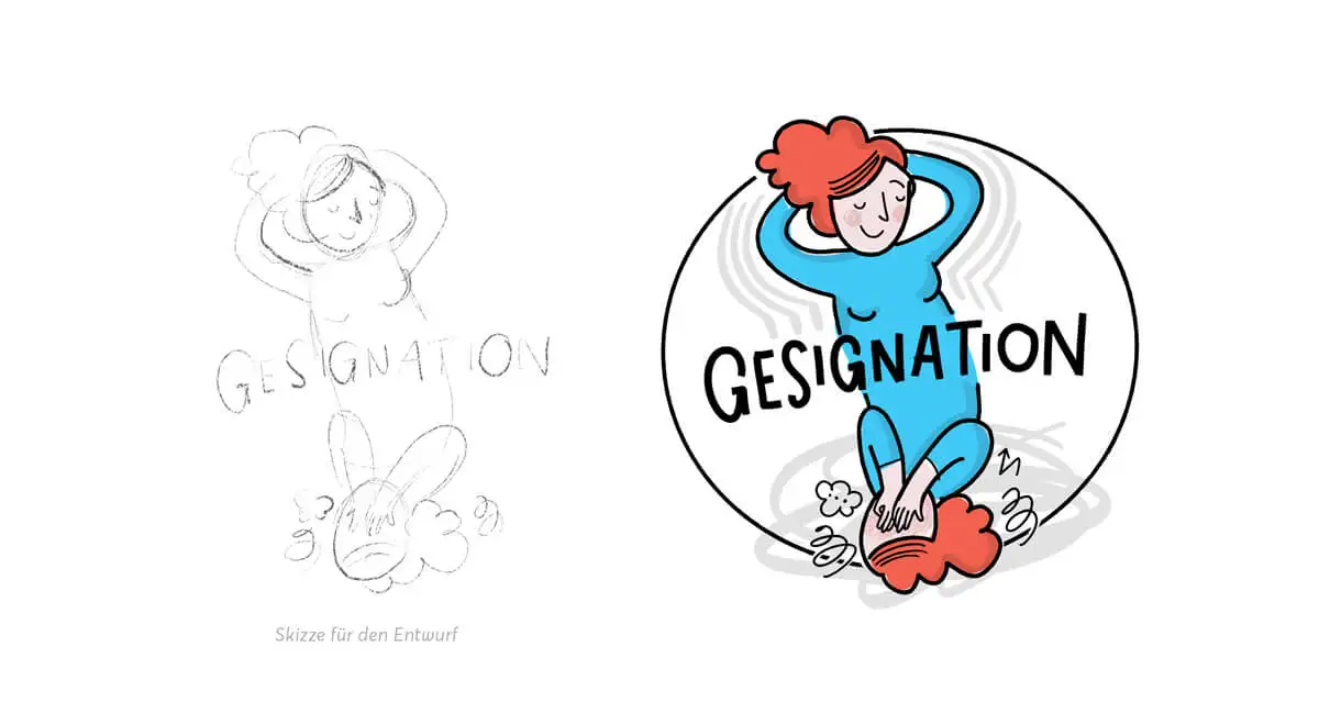Erste SkizzenDas war meine erste Idee, die aber vielleicht ein bisschen zu negativ war…Das ist das finale MotivFür die Aufkleber haben wir eine kleine Auswahl an verschiedenen Typen entworfen