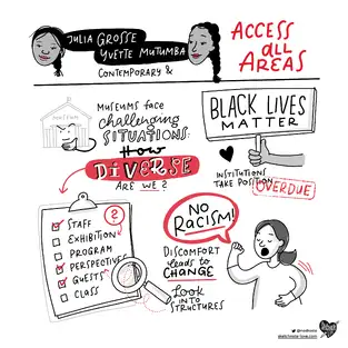 Diese Veranstaltung hat meinen Blick auf Museen deutlich verändert. Rückblickend dahingehend, was Museen früher waren und wer darüber bestimmt hat, was eigentlich Kunst ist. Und vorausschauend weil auch Museen sich den neuen Anforderungen rund um die Corona Pandemie stellen müssen.