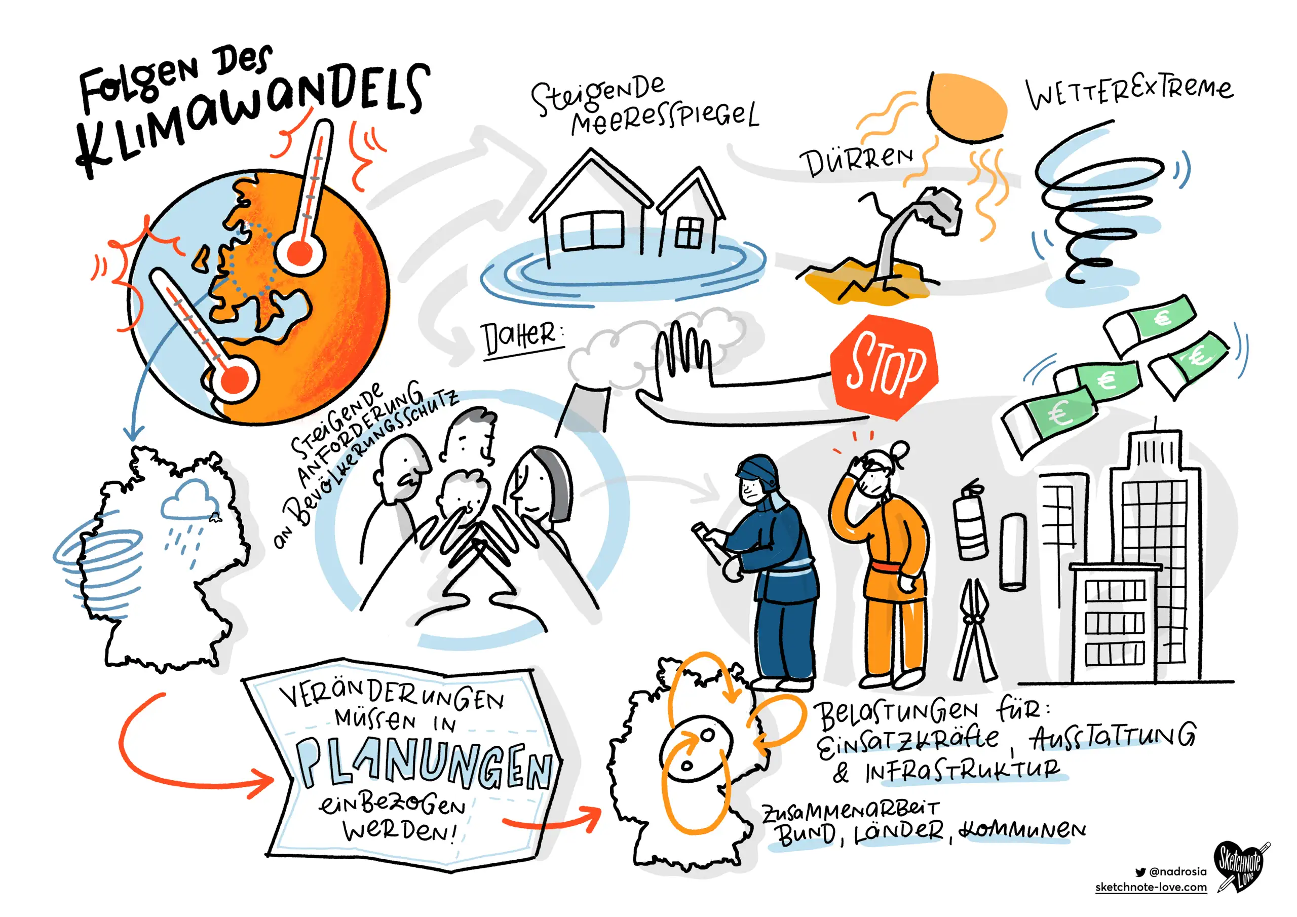 Zunehmend mehren sich die Anfragen auch Textabschnitte für Bücher oder Broschüren in Sketchnote-Form kompakt zusammen zu fassen. Nichts leichter als das! Für das Grünbuch Öffentliche Sicherheit 2020 habe ich die drei Hauptkapitel kurz und kompakt zusammen gefasst.