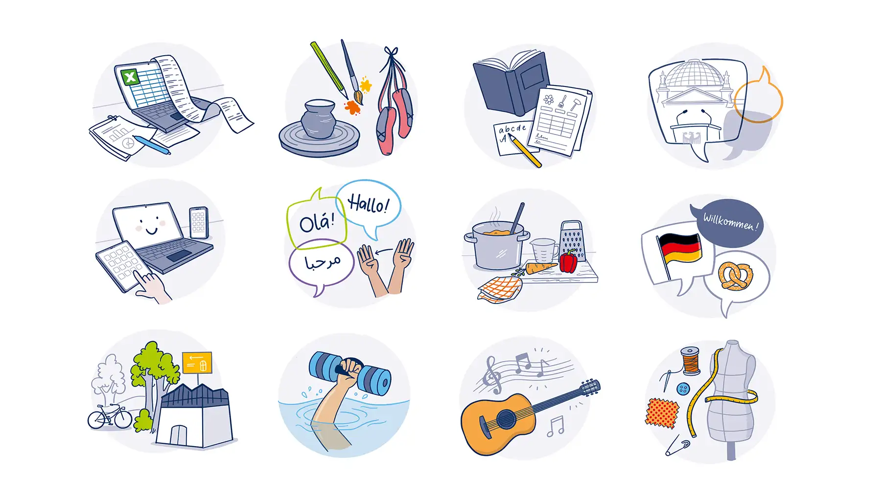Illustrationen für ein Erklärvideo für die VHS Berlin