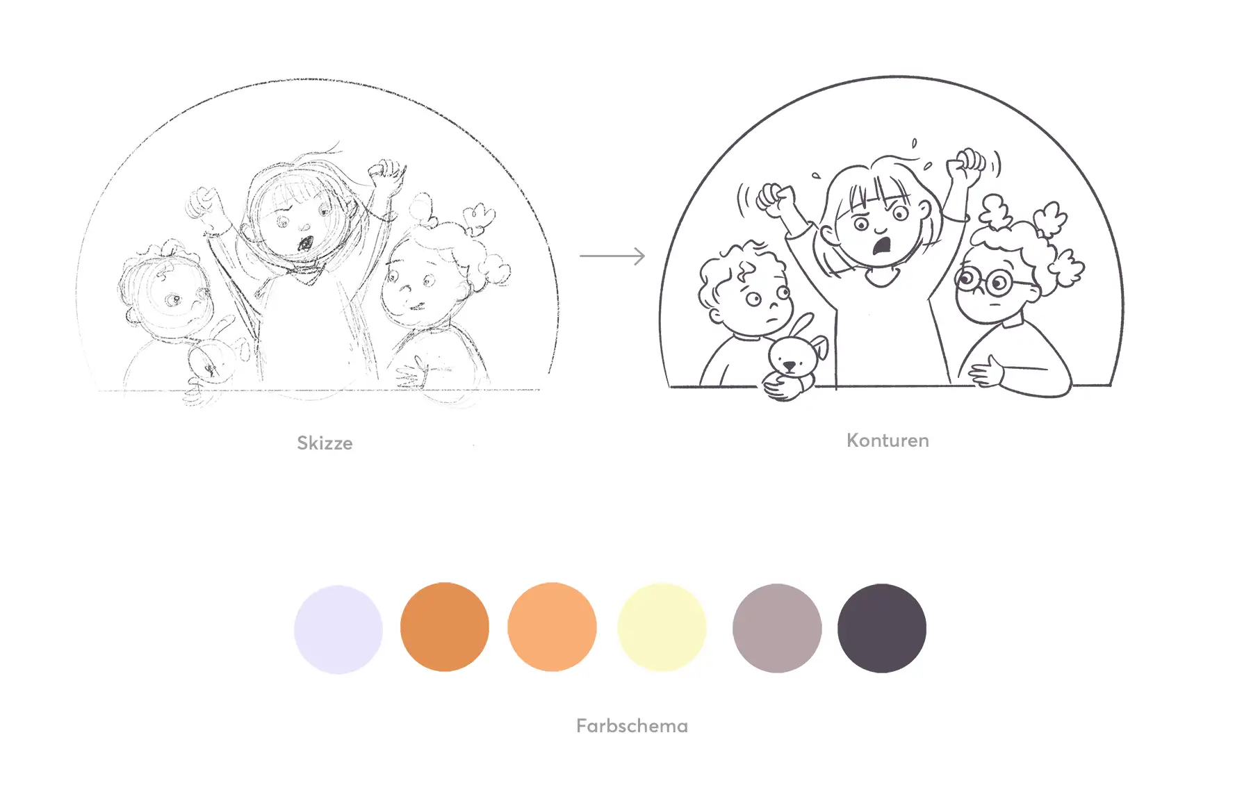 Finales Logo für die Aktion, das wütende und traurige Kinder zeigen soll. Der Hintergrund hat einen energetischen Farbverlauf