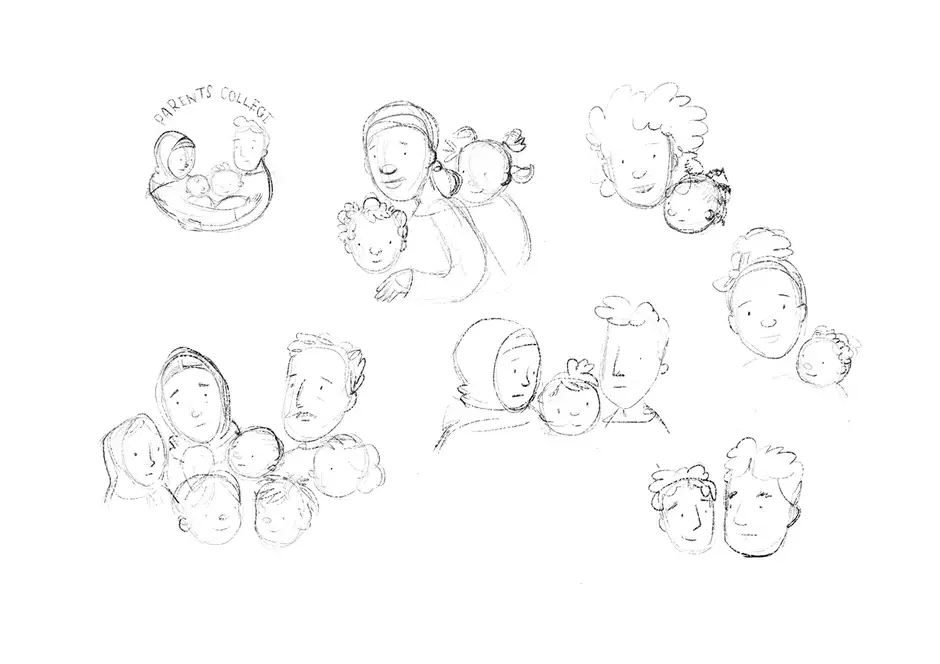 Manchmal gibt es so wunderschöne Projekte, die mich irgendwie finden, das hier ist so eins. Wegen meiner Zusammenarbeit mit Geborgen Wachsen erhielt ich 2021 diese wunderschöne Anfrage. Beim »Parent's College« geht es um Elternschulung in einem Traumaprojekt mit Geflüchteten. Natürlich spielt dabei die Sprachbarriere eine Rolle, weswegen viel mit Bildern gearbeitet wird. Ganz nebenbei ist auch noch ein Logo »abgefallen«, das ich sehr mag.
