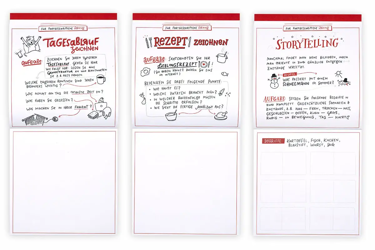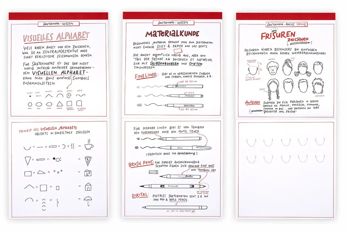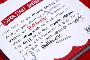 Der Quick-Start-Block ist quasi eine Erweiterung des Buches und Übungsbuches, der sowohl Sketchnote-Einsteiger als auch Fortgeschrittene abholt.