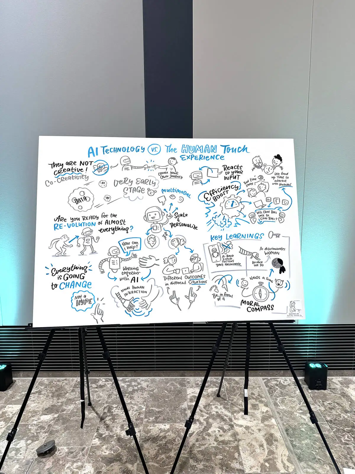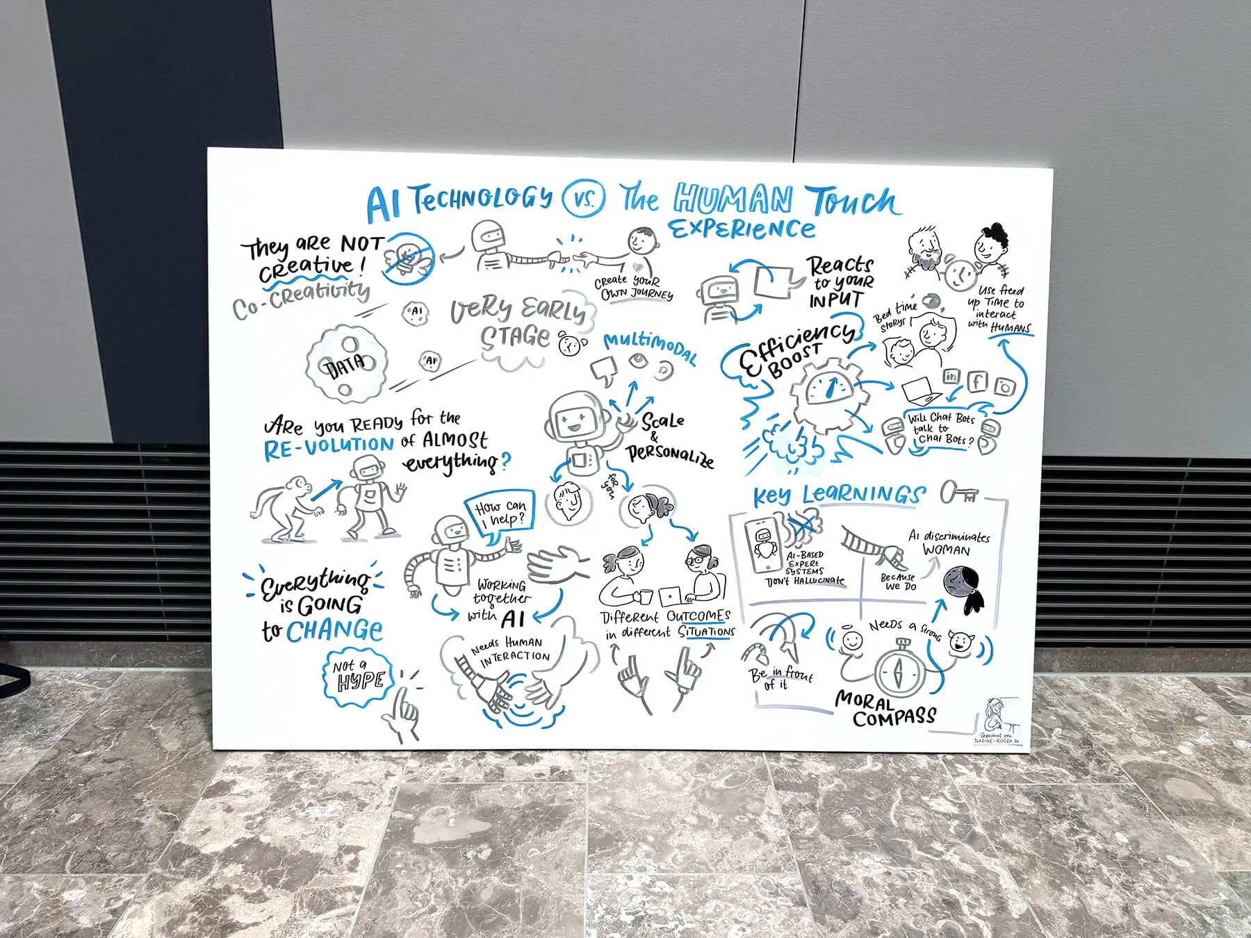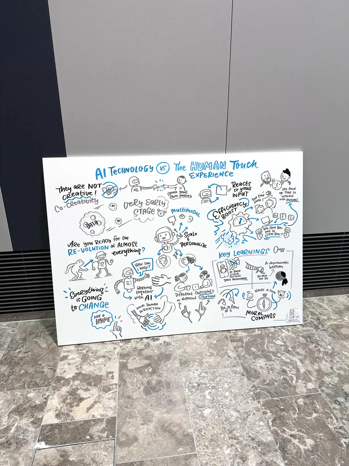 Aber ab und an mache ich auch analoge Graphic Recordings im großen Format und auch wenn ich meine digitalen Hacks da vermisse – ich denke schon auch immer: Hat ja doch schon auch was für sich so groß zu zeichnen. So war es hier bei diesem tollen Job für Siemens im Juni 2024 in dem es um die Trends im Global Mobility Markt ging.