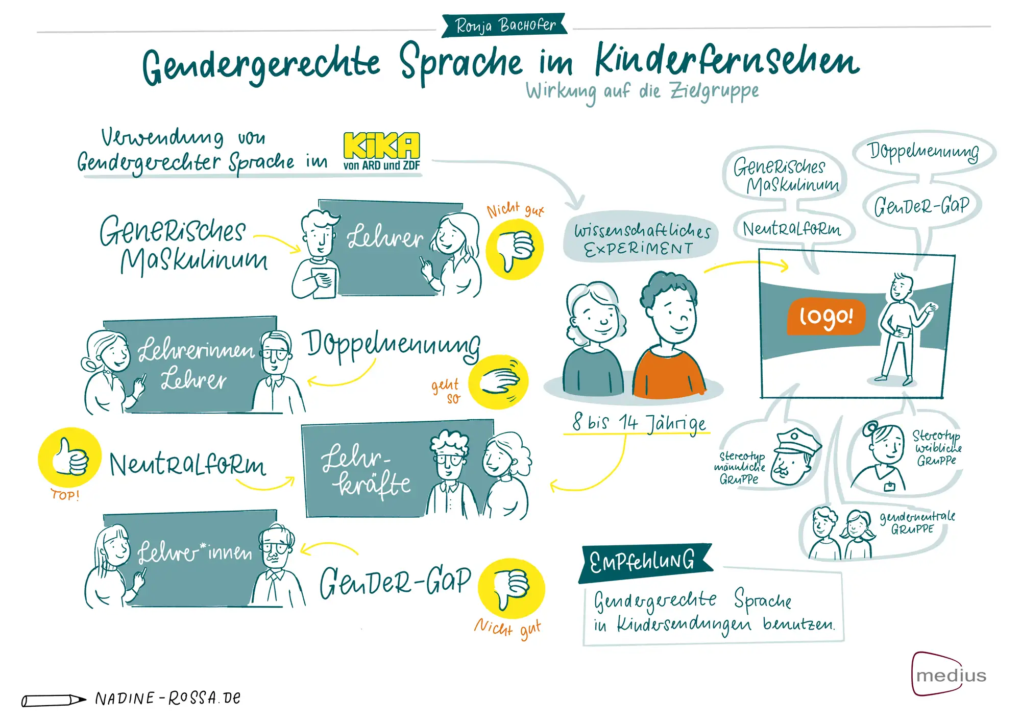 Auch 2022 durfte ich wieder die Abschlussarbeiten der Studierenden für den Medius Preis visuell zusammen fassen. Die Freiwillige Selbstkontrolle Fernsehen und die Medienanstaltung Berlin Brandenburg zeichnen so herausragende Abschlussarbeiten aus. Als Dankeschön erhalten die Studierenden einen visuelle Zusammenfassung ihrer Arbeit. Die Arbeiten aus dem Jahr 2020 sind hier.
