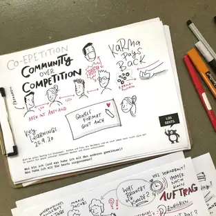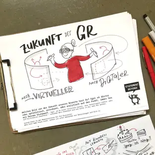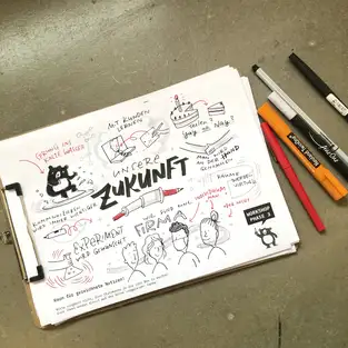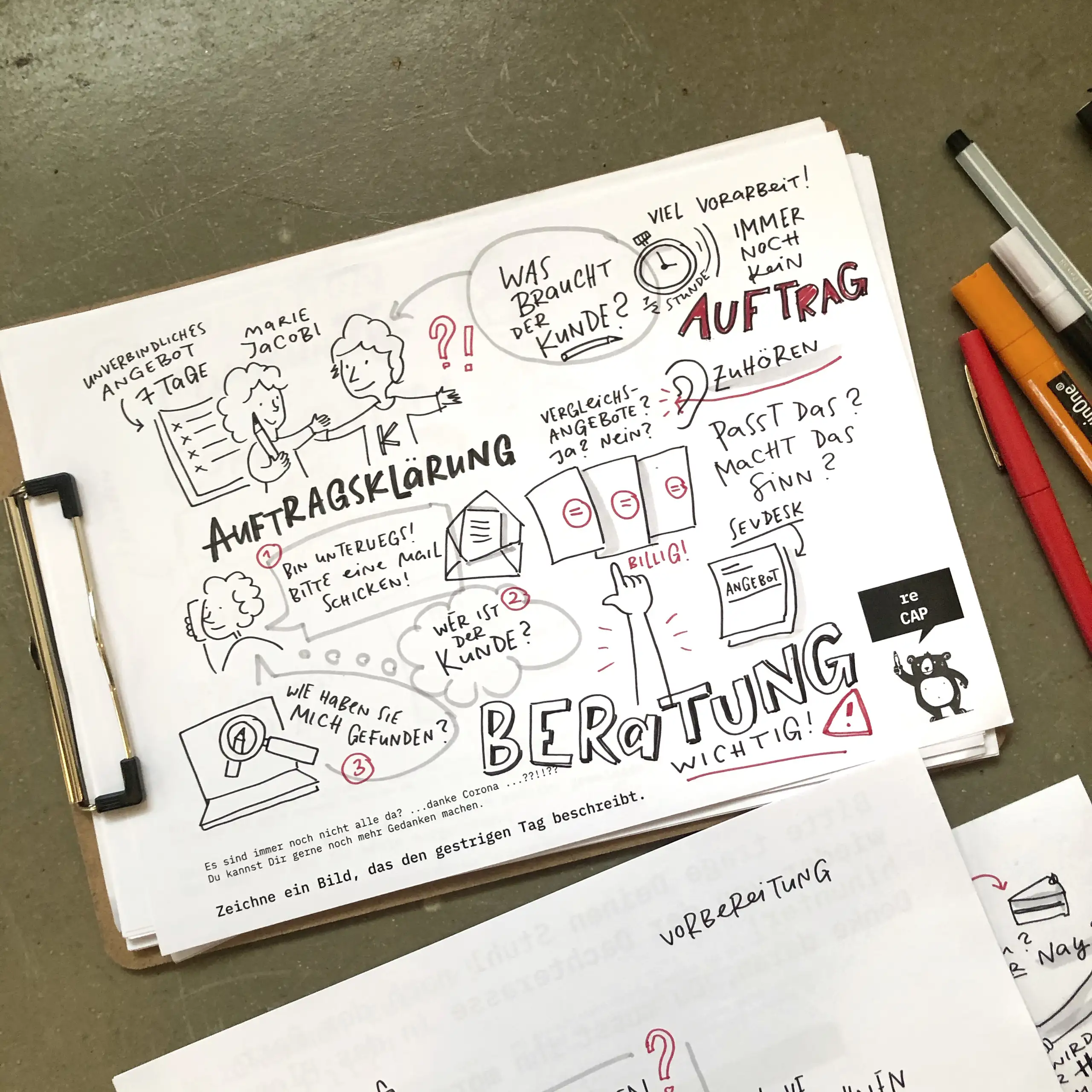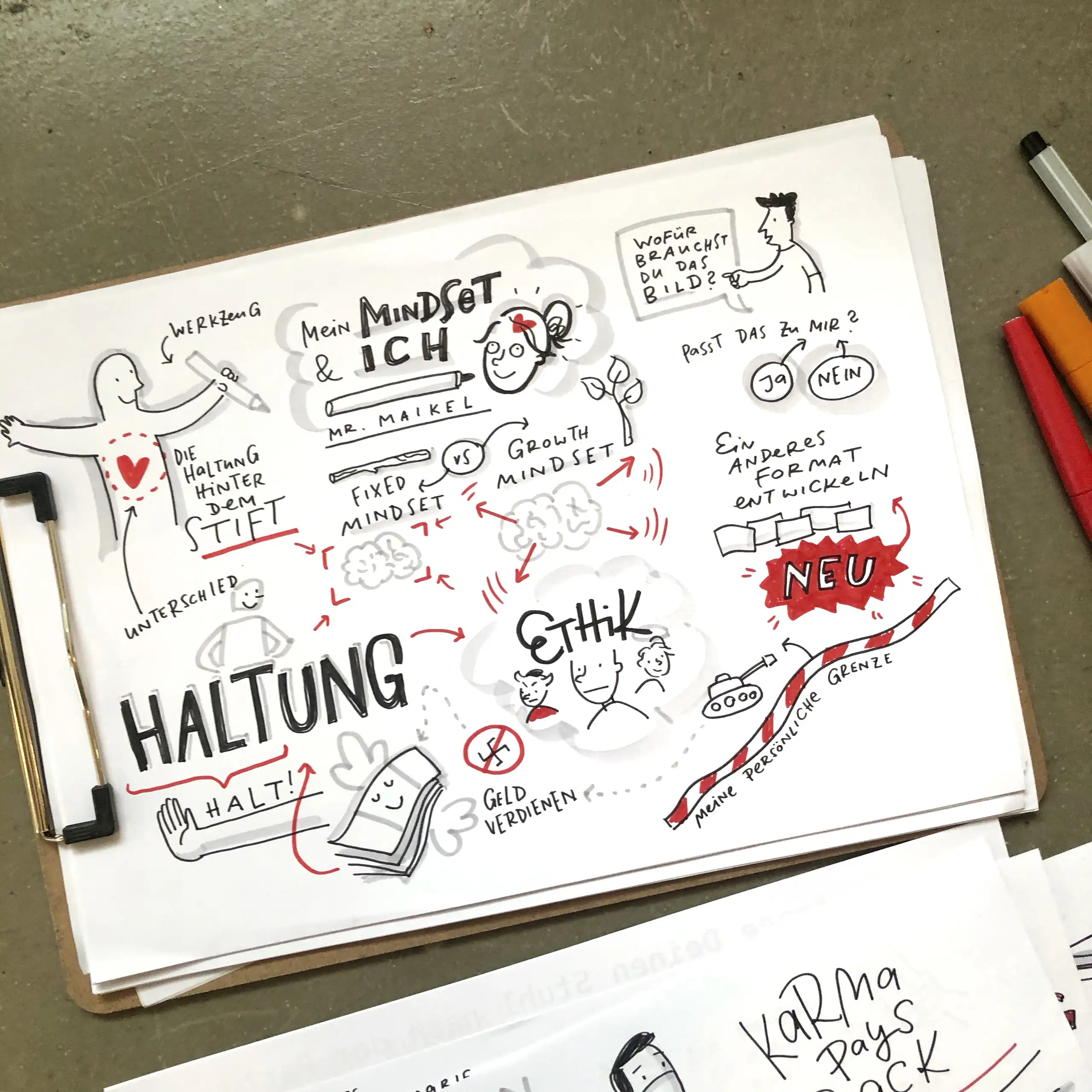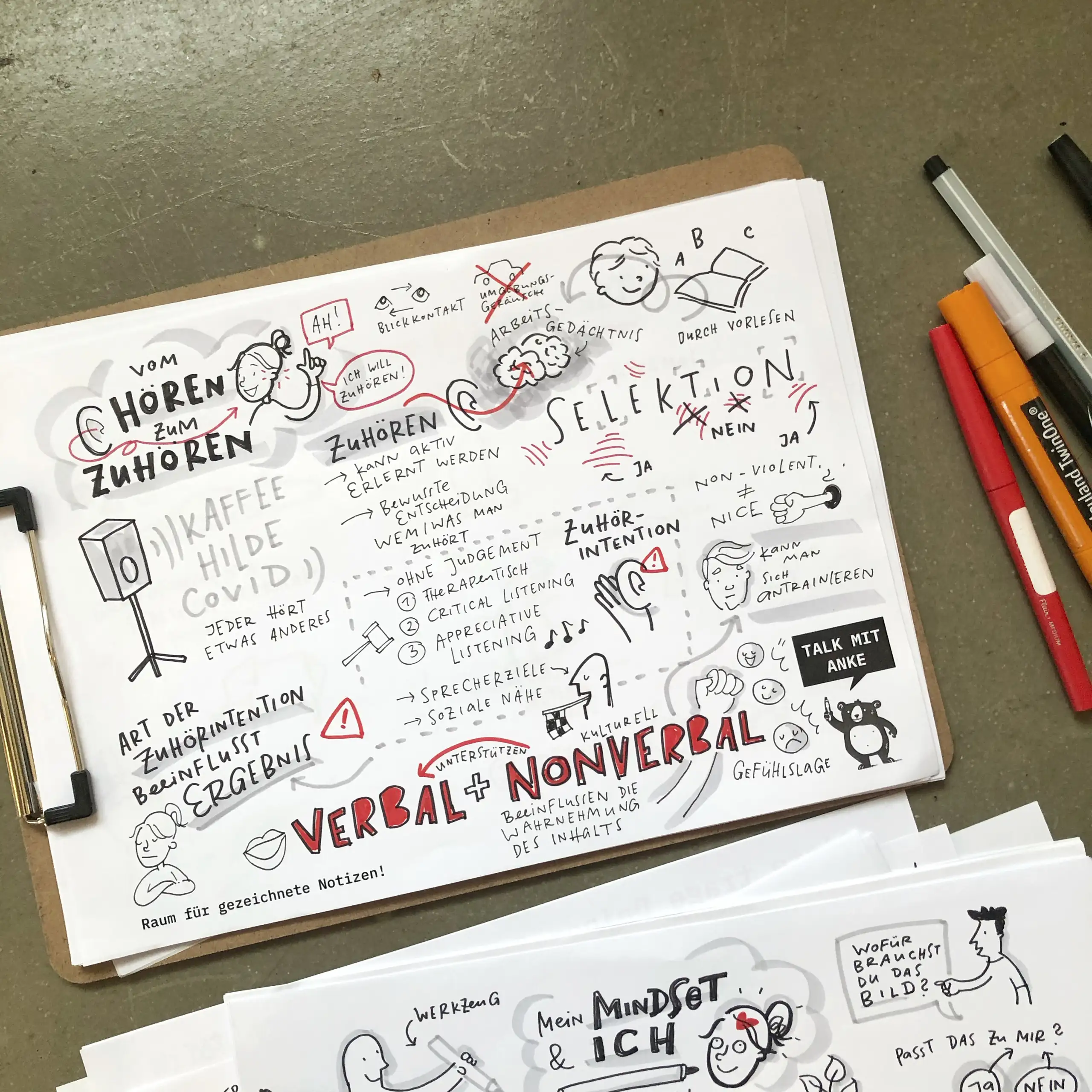 Im September 2020 fand unter strengen Hygieneauflagen der Graphic Recorder Gipfel in Berlin statt. Eine in jeglicher Hinsicht sehr tolle und emotionale Veranstaltung, die für 2020 in der Form sehr besonders war. Ich habe mich dabei zur Abwechslung mal wieder auf analoge statt digitale Sketchnotes konzentriert.